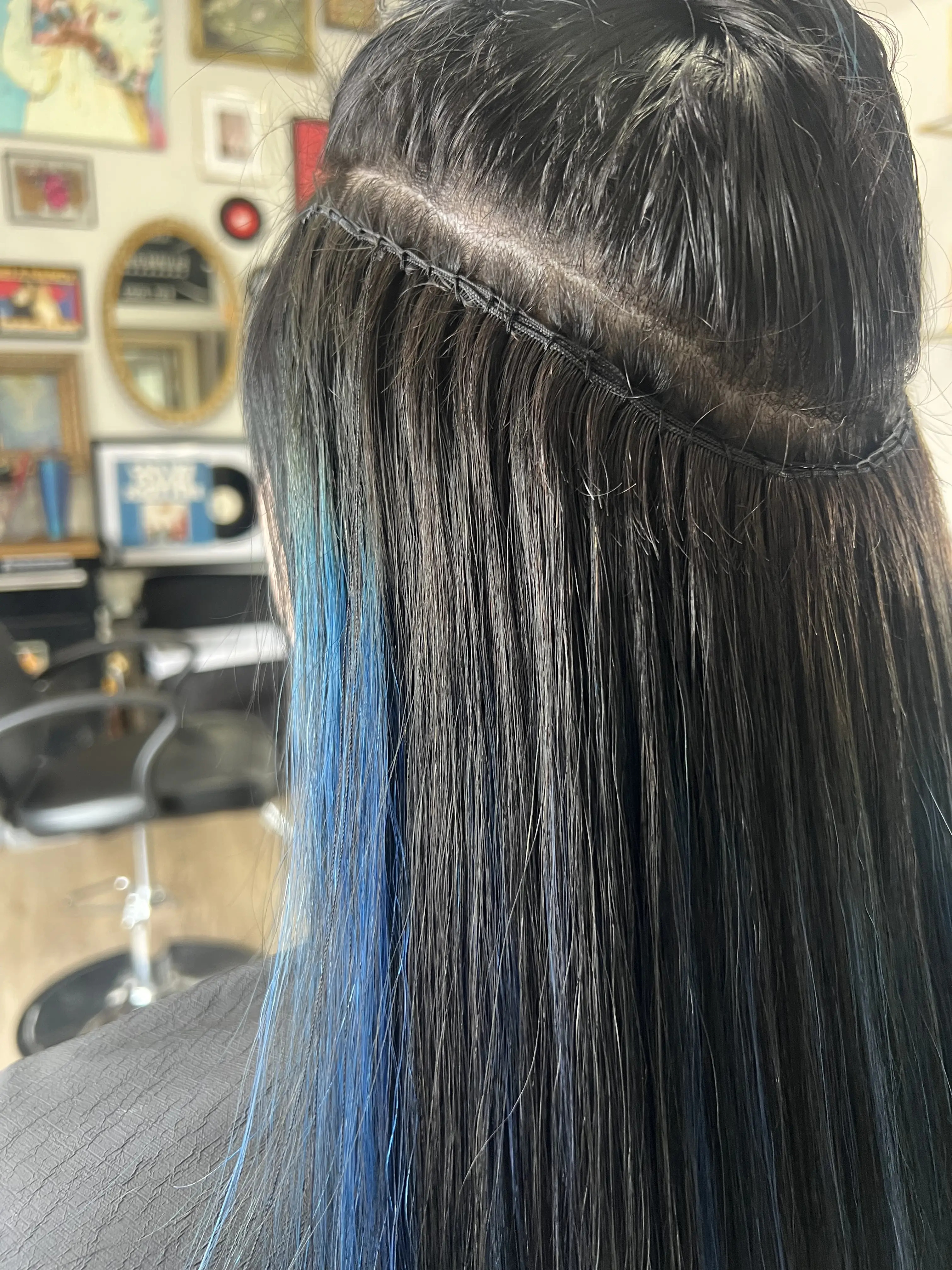 restitch is removal of rows, a shampoo for you & your wefts, rows reinstalled & finished with a lite style. refit time frame personalized per guest & priced per row.